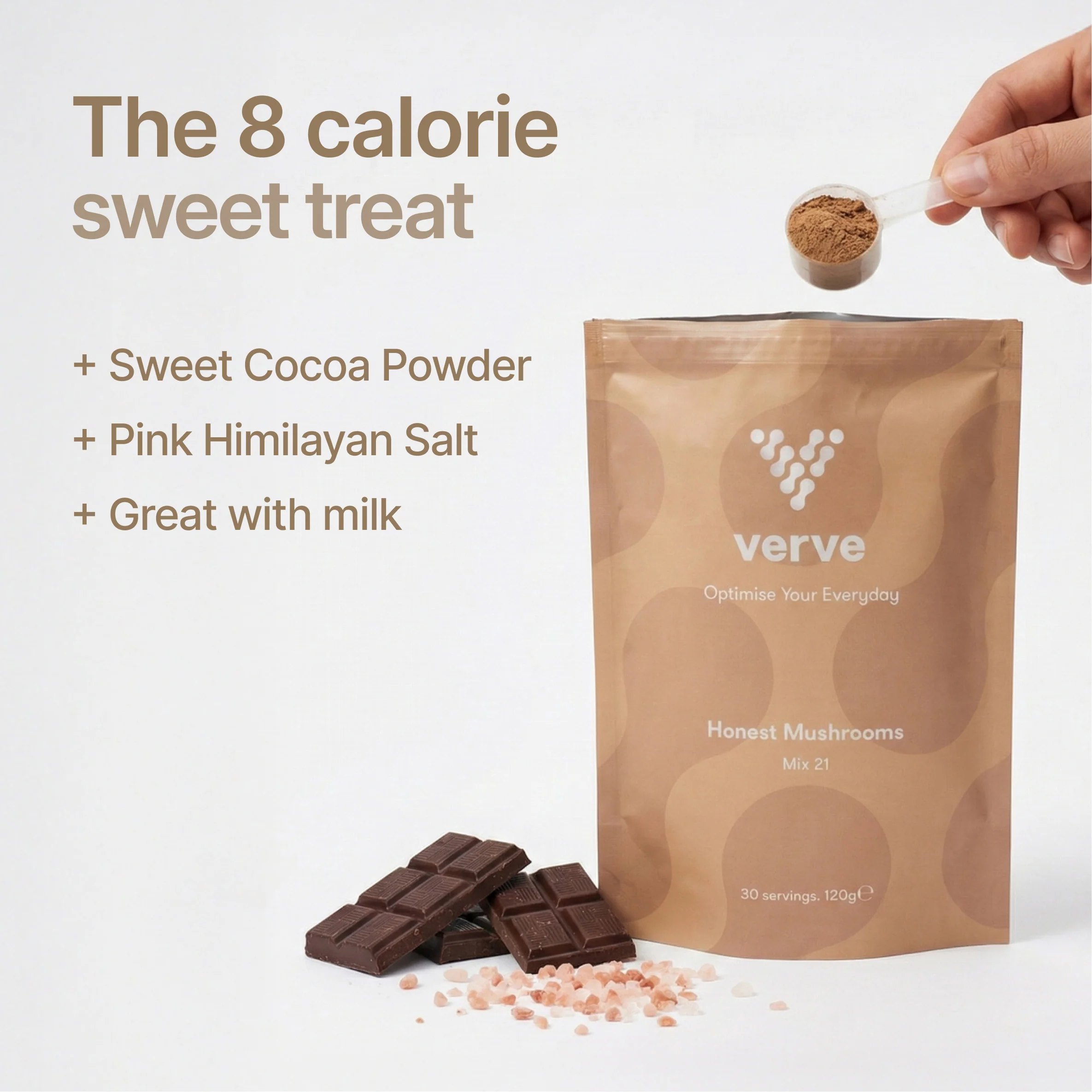 Optimise your everyday with Verve's Honest Mushrooms: a transparent, best-in-class blend of miracle mushrooms from Lion's Mane, Reishi, Cordyceps, and Chaga for enhanced focus, energy, and immunity.